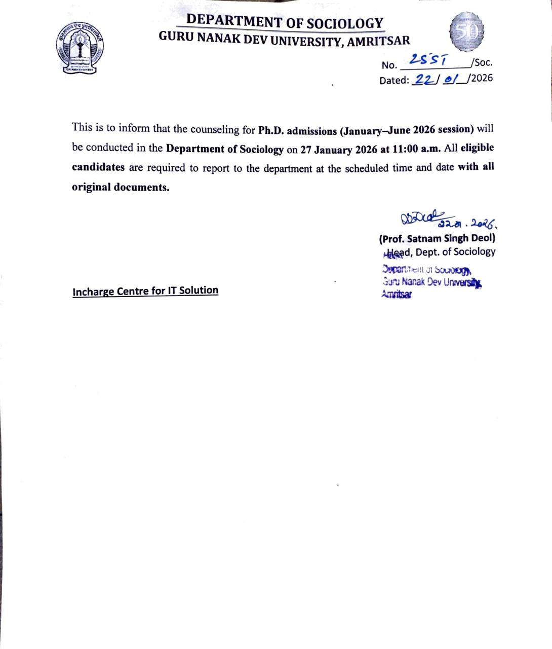 Counseling Schedules for Ph.D. Courses Session Dec. 2025